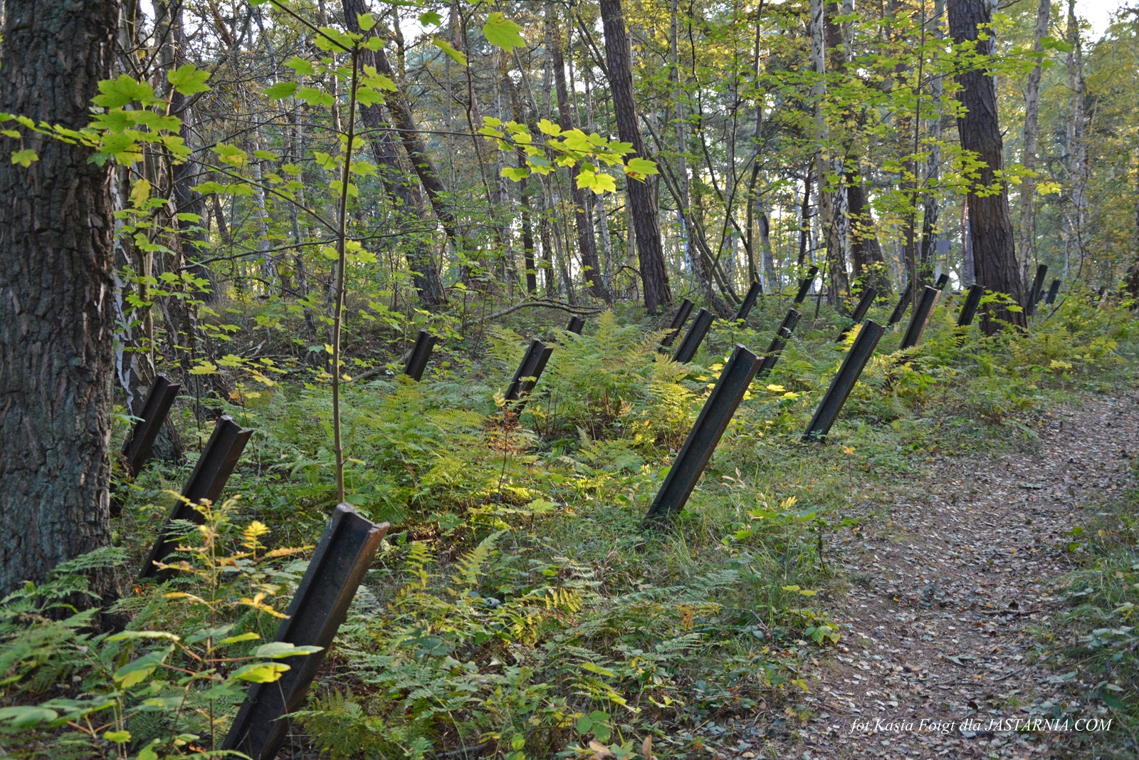 W lesie znajduję się sporo umocnień i różnych elementów uzbrojenia.